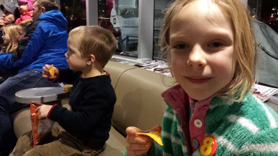 With Matylda and Orlando astride their new steeds, (a brace of lightweight Isla bikes) we explored the local city farm where a blacksmith was teaching some locals how to scroll a piece of iron on an anvil. Its a fully functioning farm situated next to Surrey Quays in the heart of the city. Cows and pigs are raised and sold for meat, crops are grown and geese are kept for eggs.